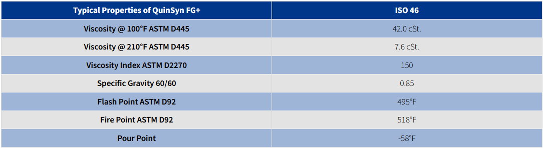 QuinSyn® F es una mezcla de fluido sintético hidrocarbonado grado alimenticio poli-alfaolefi- nico (PAO) con lubricación mejorada en temperaturas altas y bajas, baja volatilidad y compatible con aceites minerales y equipo diseñado para usar aceites minerales. USDA autoriza (en USA) al QuinSyn® F para uso en plantas de carne y avícolas inspeccionadas federalmente (H-1). También cumple con FDA 21 CFR 178.3570-Lubricantes con contacto alimenticio incidental.