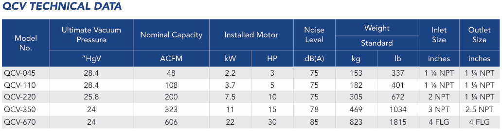 Las bombas QCV representan equipos con un diseño diferente a otras bombas de vacío como las de tornillo o de paletas.