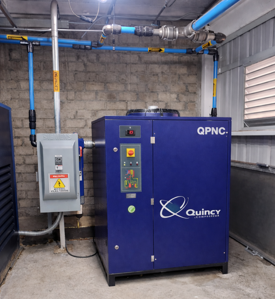 Además, los secadores Quincy ofrecen un desempeño estable y consistente, incluso en condiciones de operación exigentes. Su diseño está orientado a aplicaciones industriales, permitiendo reducir la humedad del aire comprimido, optimizar el consumo energético y disminuir los costos de operación asociados a la corrosión y a las fallas en equipos neumáticos.